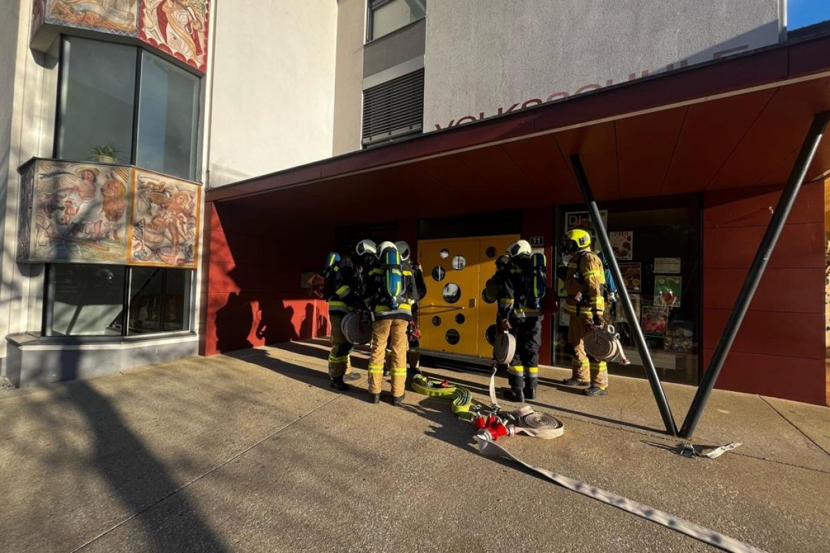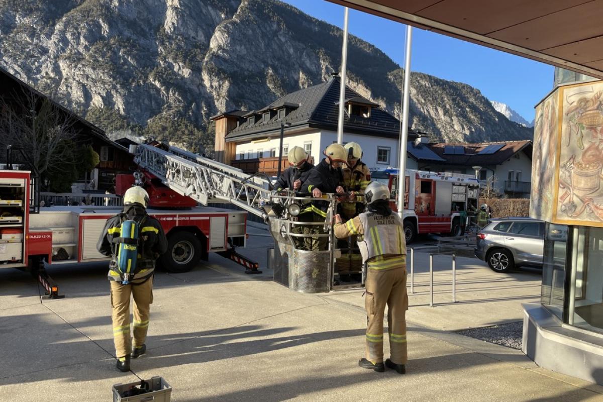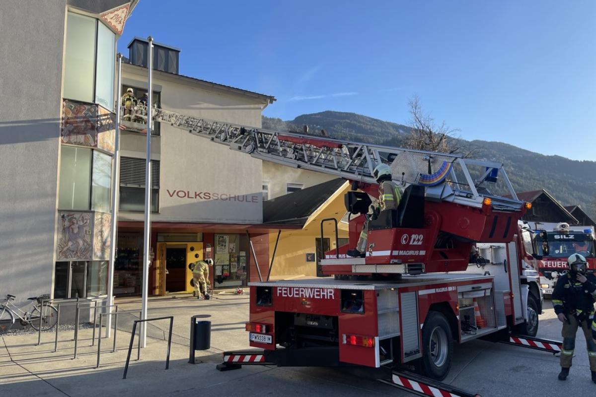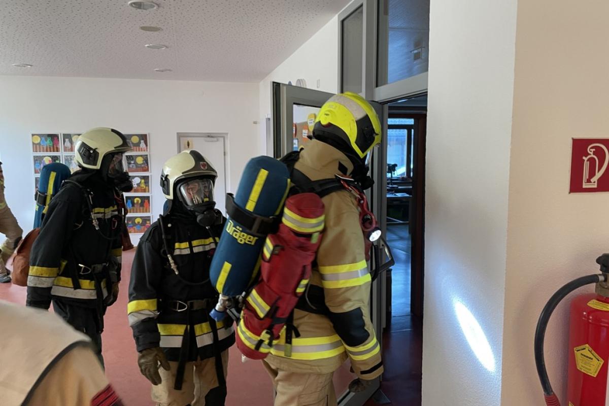 Beim Eintreffen unserer Mannschaft stellte sich ein Brand im ersten Stock heraus. Aufgrund der starken Verrauchung im Stiegenhaus konnte eine Klasse das 2 OG nicht mehr selbstständig verlassen. Die betroffene Klasse musste von unseren zwei Atemschutztrupps und der Drehleiter evakuiert werden. Im weiteren Übungsverlauf wurden die restlichen Räume noch durchsucht und mittels Überdruckbelüfter entraucht.