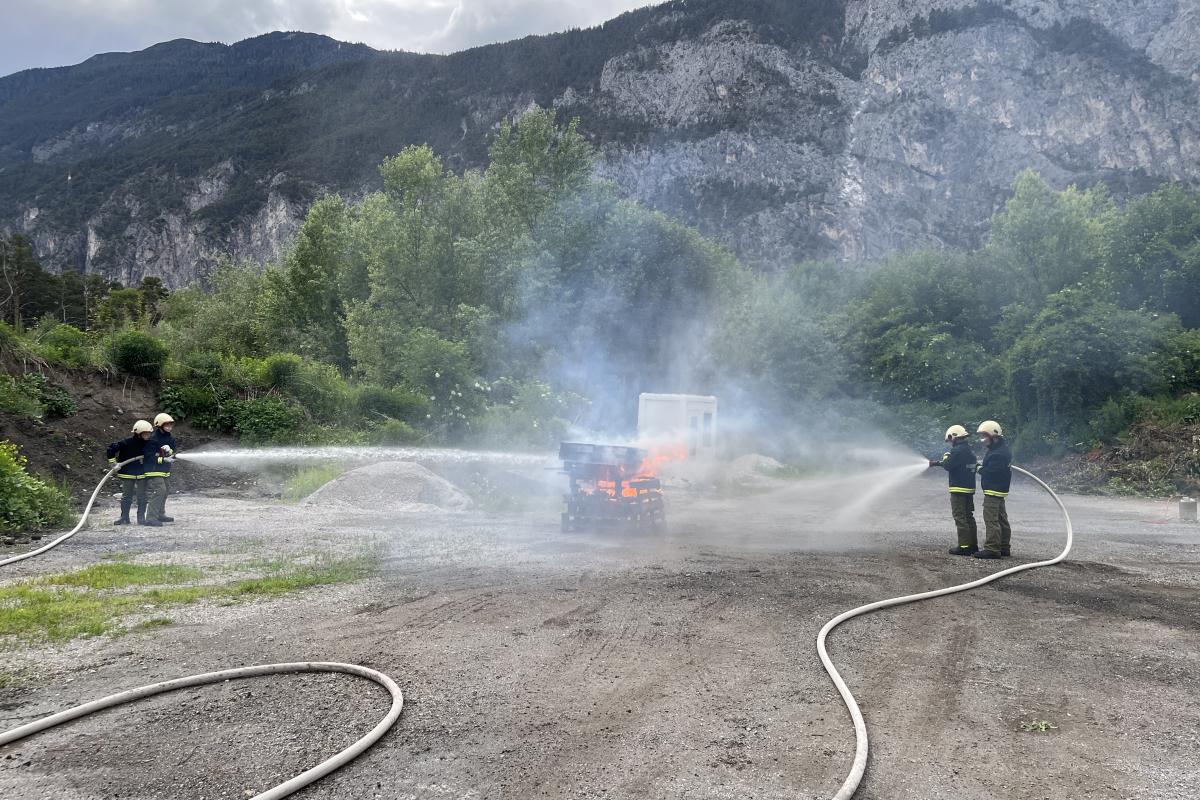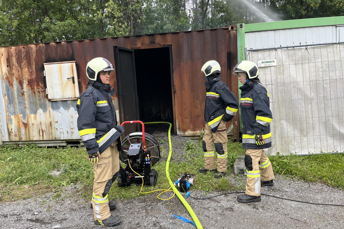 Die Übungsannahme der Ausbildungsgruppe umfasste einen Kleinbrand im Freien sowie einen Zimmerbrand. Die jüngeren Kameradinnen und Kameraden übernahmen dabei die Brandbekämpfung im Freien mittels C-Rohren. Die ältere Gruppe bekämpfte den Zimmerbrand mithilfe des Standard-Regelangriffs unter Atemschutz.