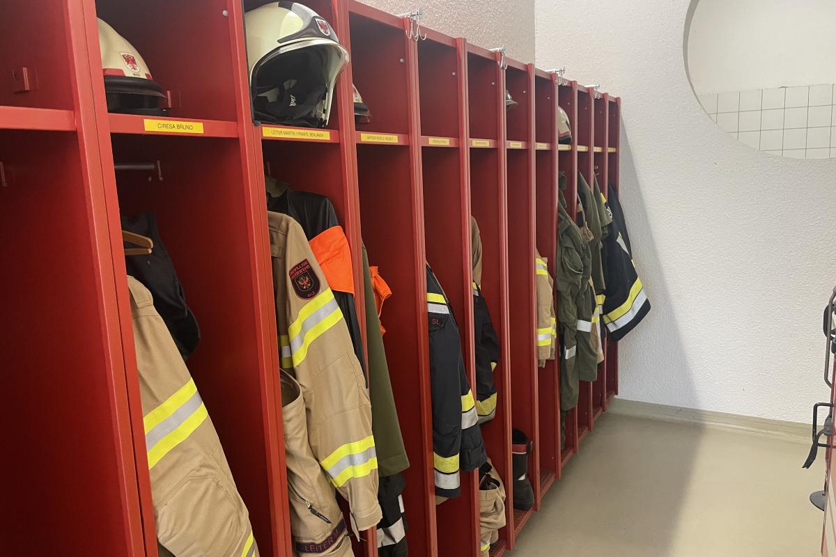 Die Spinde aller Mitglieder befinden sich in einem eigenen Umkleidebereich im Feuerwehrhaus. Jeder Feuerwehrkamerad und jede Feuerwehrkameradin verfügt über einen persönlichen Schrank zur Aufbewahrung der Einsatzbekleidung und Schutzausrüstung. Die klare Anordnung sorgt für Ordnung und ermöglicht ein rasches Umkleiden im Einsatzfall.