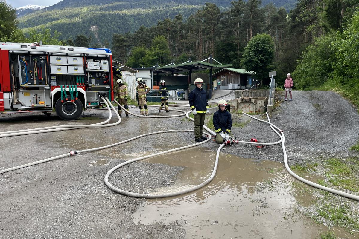 Im Anschluss folgte die Übung des 2. Zuges, der ein Szenario im örtlichen Gewerbegebiet abarbeitete. Hierbei kam die unterirdische Löschleitung bei der A12 zum Einsatz, um eine konstante Wasserversorgung vom Inn bis ins Gewerbegebiet sicherzustellen. Abschließend wurden noch alle weiteren Saugstellen im Dorf besichtigt.